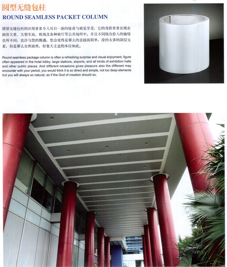 圓形無縫包柱常常現在大堂、大車、及展廳等公共場所中。并且不同給人愉悅也所不同,也許與您期遇,您會覺得是那么直接而簡單,沒有太多深層元素,但總是那么自然而然,好象天主造物本如此。